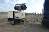 Die mobilen und verfahrbaren Lichtmastaggregate von Hüffermann lassen sich bequem mit einem PKW abholen oder bewegen. Mit einer Masthöhe von bis zu 9 Metern sorgen die Lichtmasten für eine sehr gute Rundumausleuchtung. Auch bei Wind bis 100 km/h bleiben die Lichtanlagen sicher stehen. Selbstverständlich verfügen die Lichtmasten auch über eine automatische Sicherheitsverriegelung und Notablass. Wir vermieten Geräte der Hersteller Doosan und Caterpillar an.